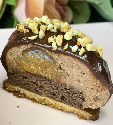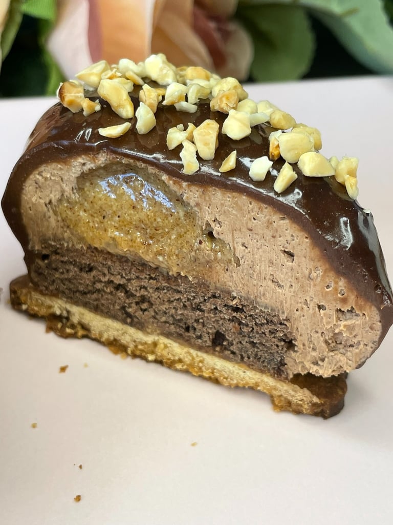 Chaque création repose sur une base sablée croustillante, contrastée par un cœur fondant.